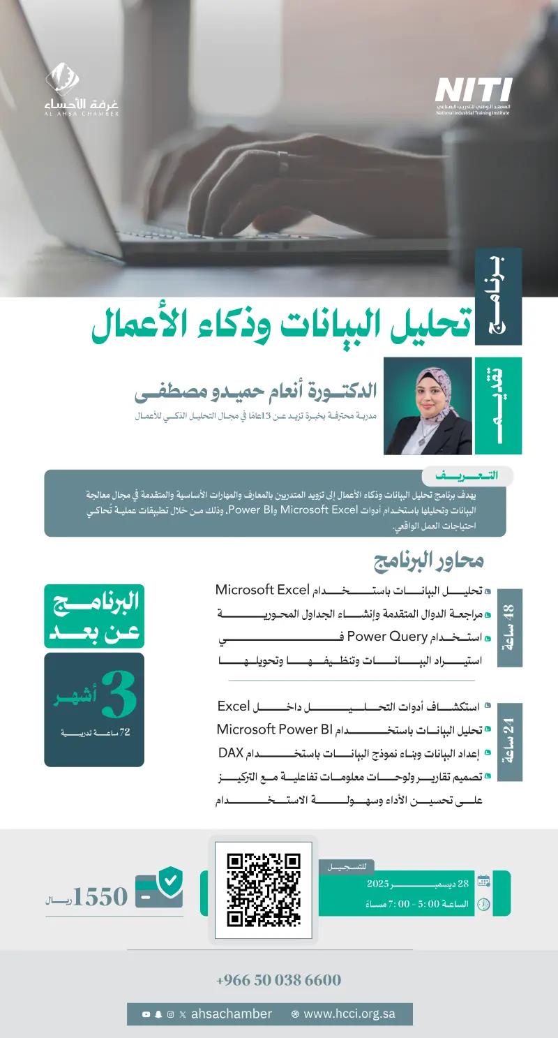 يهدف برنامج تحليل البيانات وذكاء الأعمال إلى تزويد المتدربين بالمعارف والمهارات الأساسية والمتقدمة في مجال معالجة البيانات وتحليلها باستخدام أدوات Microsoft Excel وPower BI، وذلك من خلال تطبيقات عملية تُحاكي احتياجات العمل الواقعي.